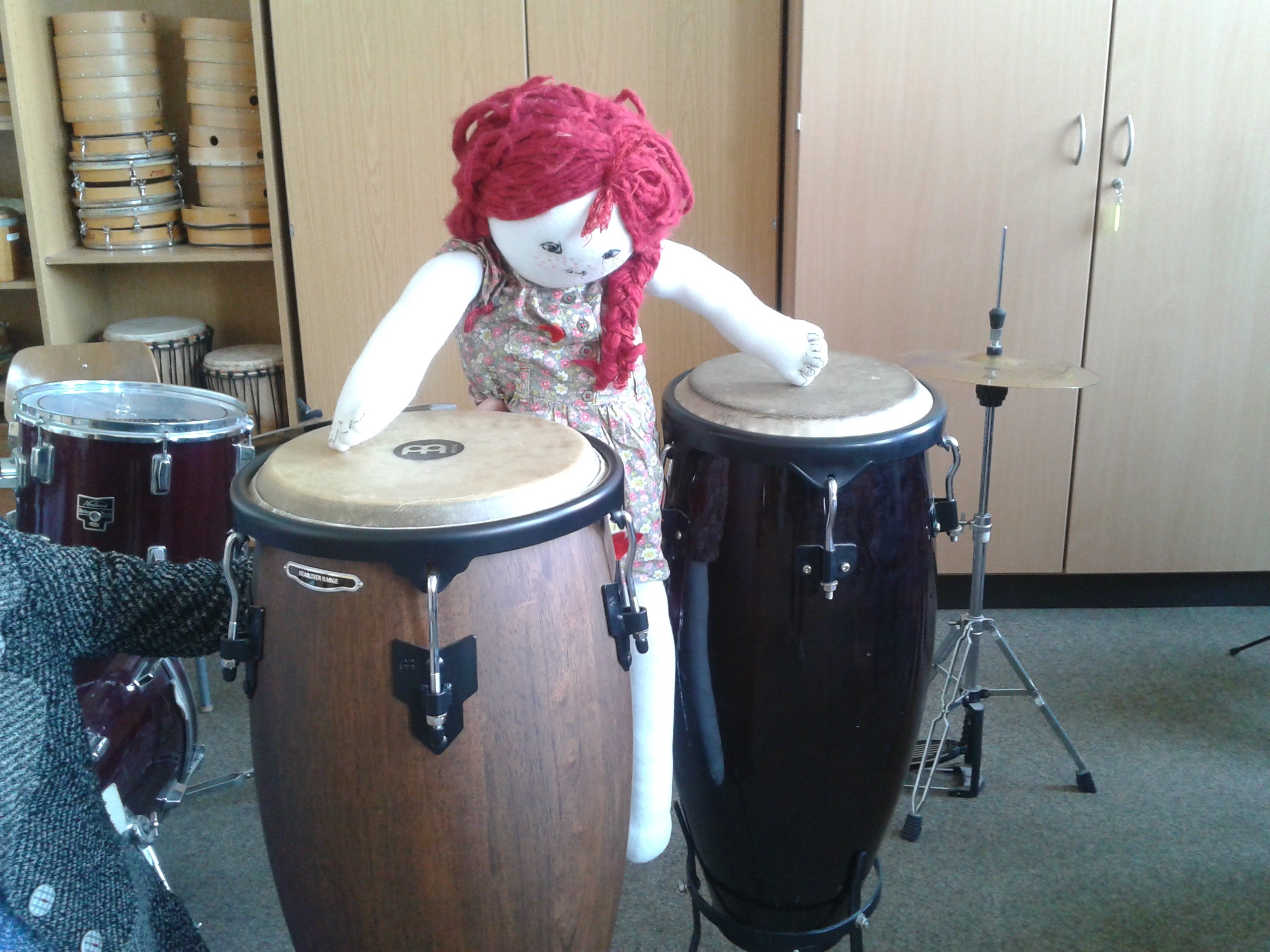 Yesterday morning we visited the school and got to see all of the different classrooms.Like us they are great artists and love music.I got to play the drums.Everyone said I was very talented.