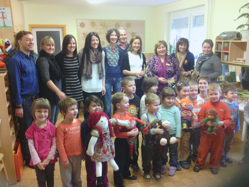 We have had a really busy day today. We got up really early to meet the teachers from Iceland, Germany, Estonia and Slovenia who are working on our Comenius project with us. The Slovenian teachers brought us to meet the girls and boys in Vrtec Galjevica.